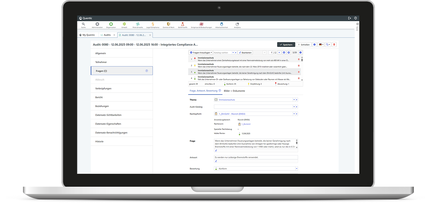 Ihre Auditvorbereitung unterstützen wir gern durch unsere Content Services. Dabei importieren wir Auditfragen, die nach Normabschnitten formuliert sind, in Ihr System und verknüpfen die entsprechenden Fragenkataloge und Normforderungen für Sie. Sparen Sie wertvolle Zeit und setzen Sie auf unser Experten-Team!